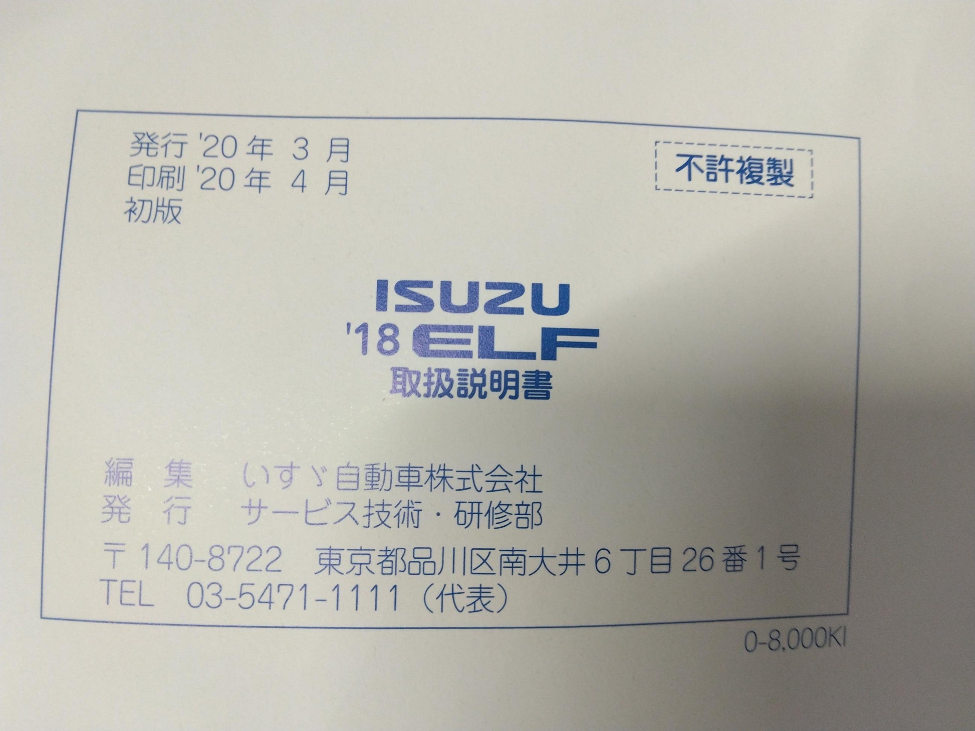 取扱説明書 いすゞ エルフ 発行:2020年4月(中古)