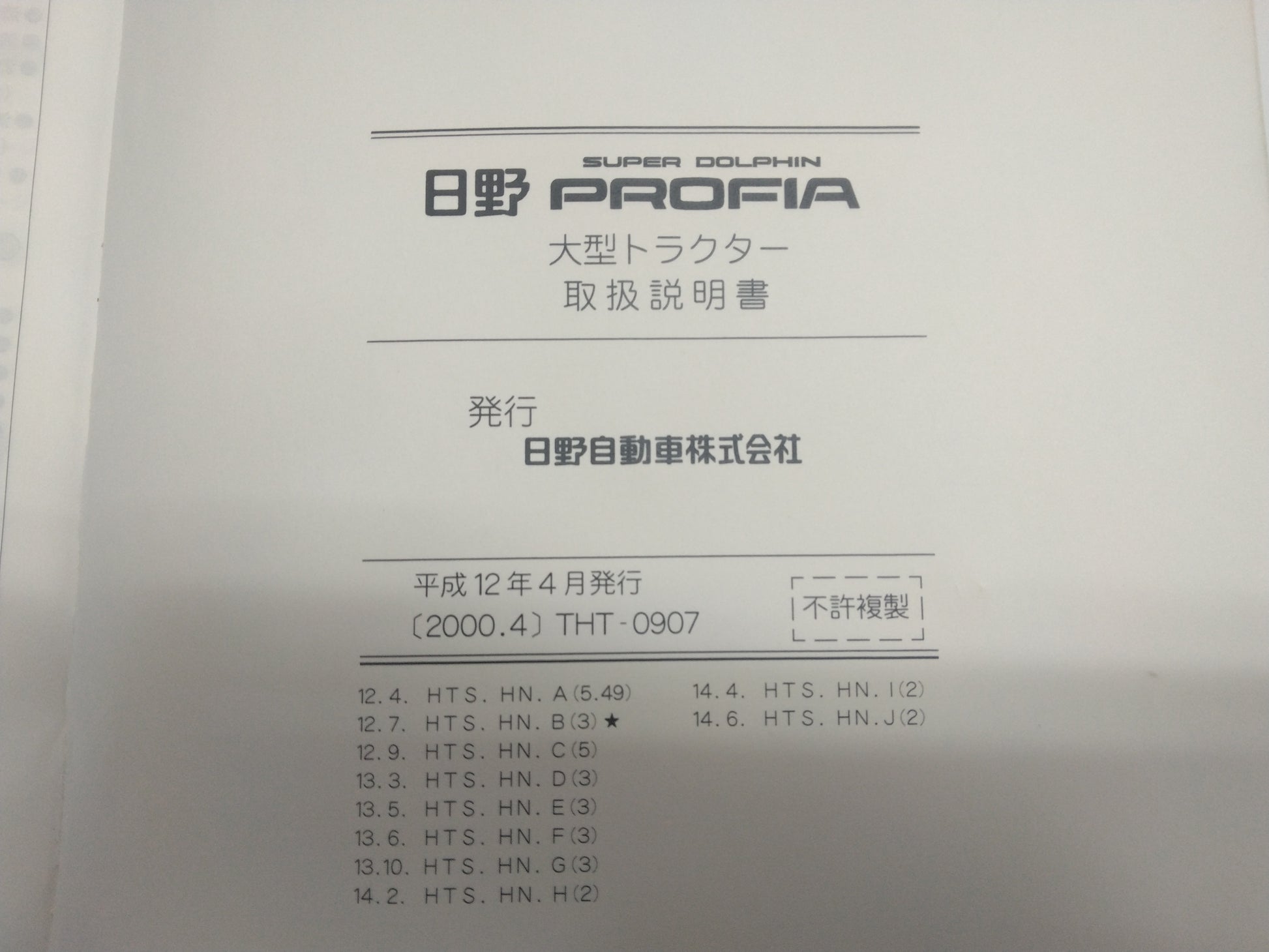 取扱説明書 日野プロフィア スーパードルフィン (中古)