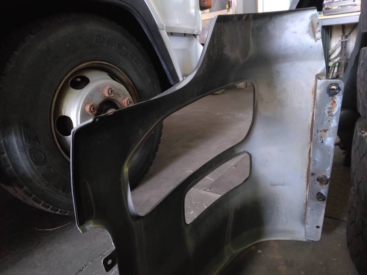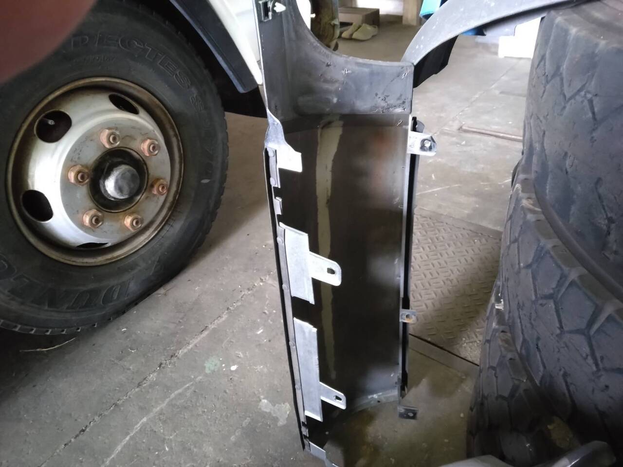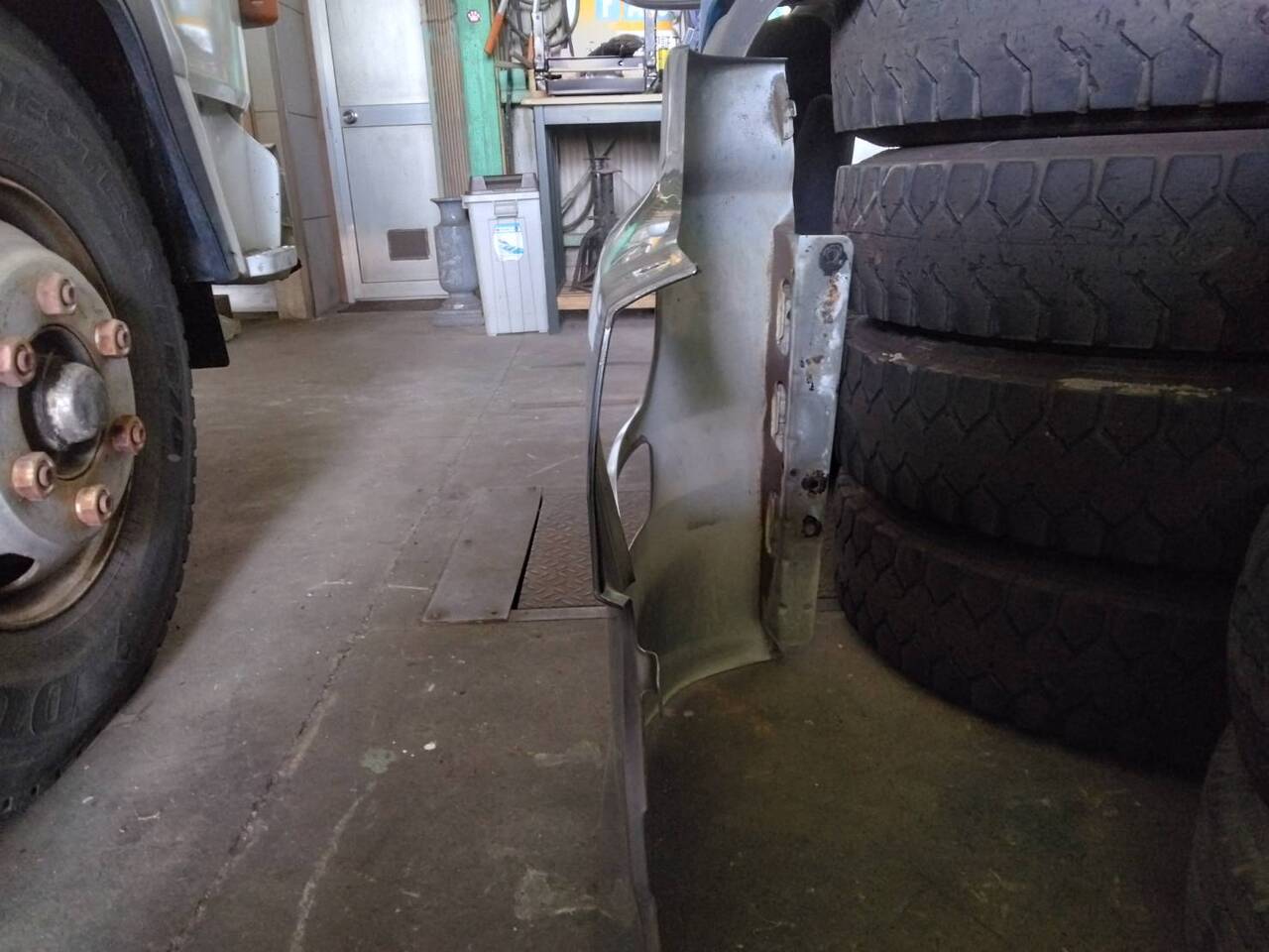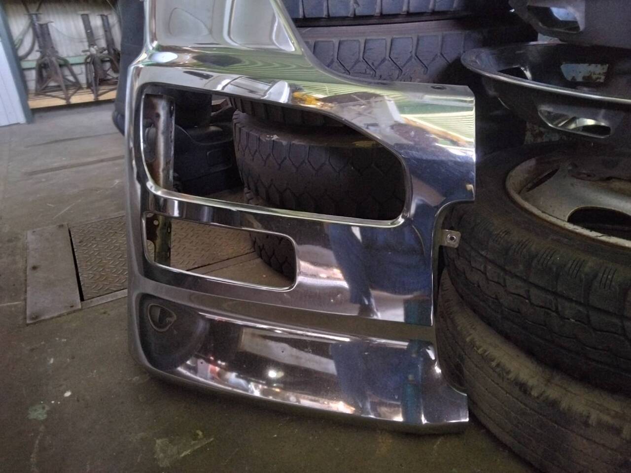 ■クオンのメッキ純正 ヘッドライトバンパー(運転席側)■取り外し車両:日野 レンジャー より取り外し